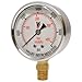 Brass movement with C shaped Boudon tube. 1/4in. NPT male connection. For use with air, gas, oil or water. Black enameled aluminum pointer, white aluminum dial and temperature compensating polycarbonate window. Glycerin filled to dampen pulse and vibration. Accuracy: ASME/ANSI B40.1 Grade A (2-1-2%).