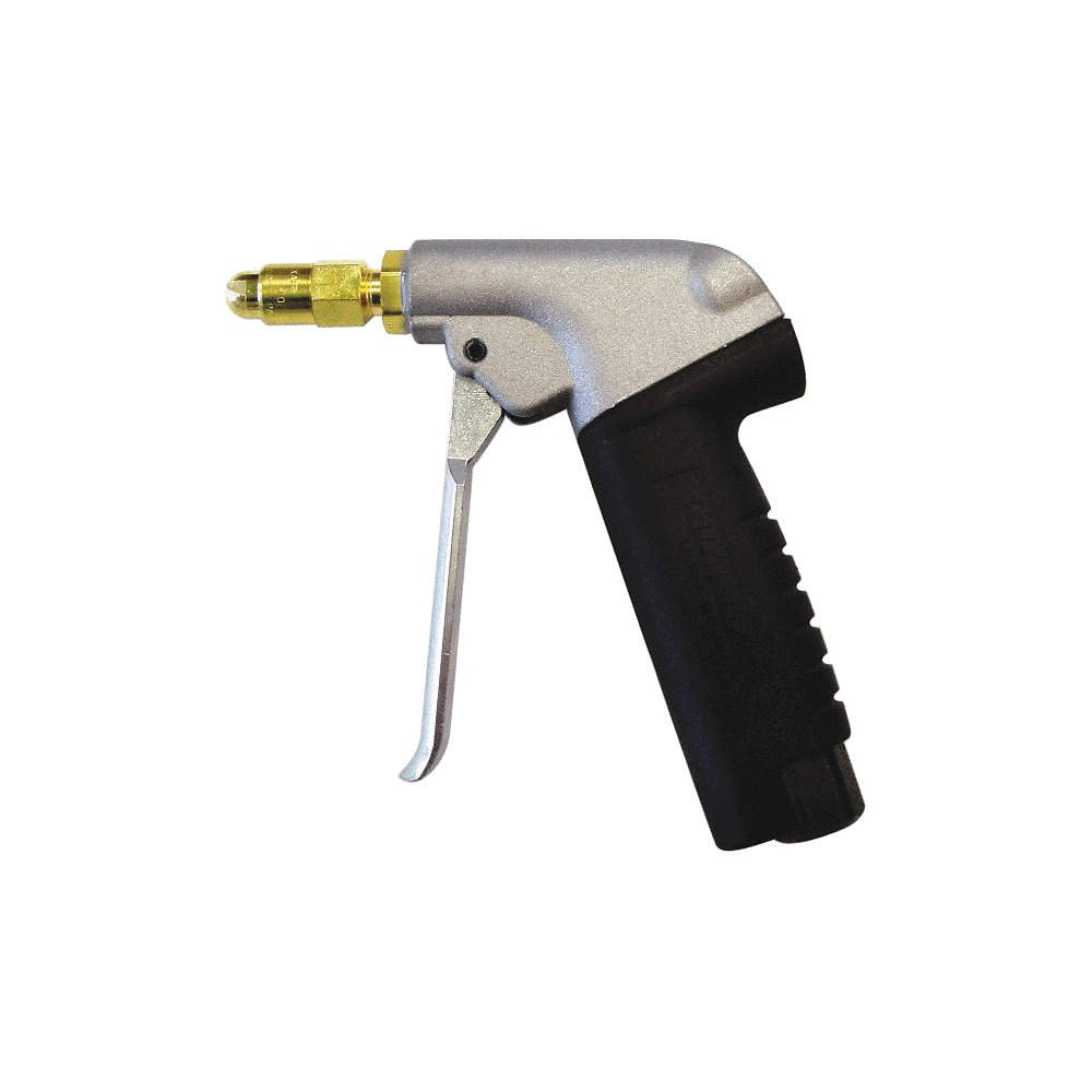 The adjustable Quiet Force nozzle provides quiet operation in noise-sensitive environments. This listing is for each. Technical Specification Item Air Gun Air Gun Product Group Air Gun Air Gun Body Style Pistol Grip Standards OSHA 1910.95 Air Gun Inlet Size 3/8 (F)NPT Trigger Lever Output 100 psi Max. Inlet Pressure 120 psi Air Consumption 17 scfm Nozzle Quiet Force Body Material Aluminum Color Metallic and Black Max. dBA 80 Application Cleaning Overall Length 6