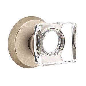Crystal Door Hardware Collection - Modern Square Glass Privacy Door Knob with #2 Rose in Tumbled White Bronze by Emtek Hardware - 7206MSCTWB234 | MyKnobs