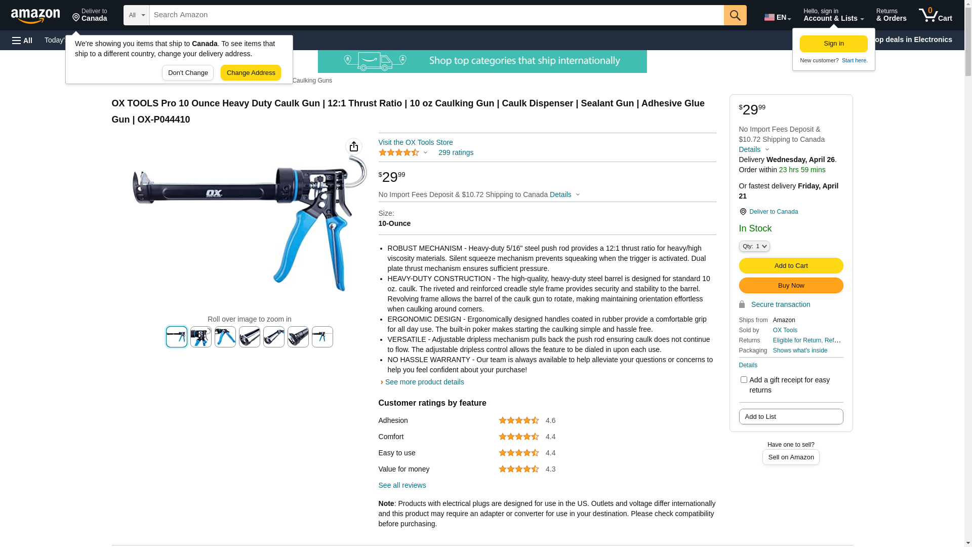 OX Tools Pro OX-P044410 10 Ounce Heavy Duty Caulk Gun, 12:1 Thrust Ratio, 10 oz Caulking Gun, Caulk Dispenser, Sealant Gun, Adhesive Glue Gun
