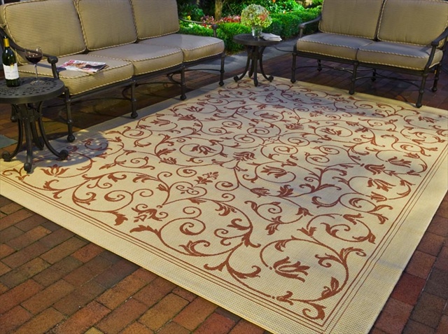 8\' x 11\'2" Rectangular Safavieh Area Rug CY2098-3201-8 Natural/Terra Color Machine Made Belgium "Courtyard Collection" Indoor/Outdoor