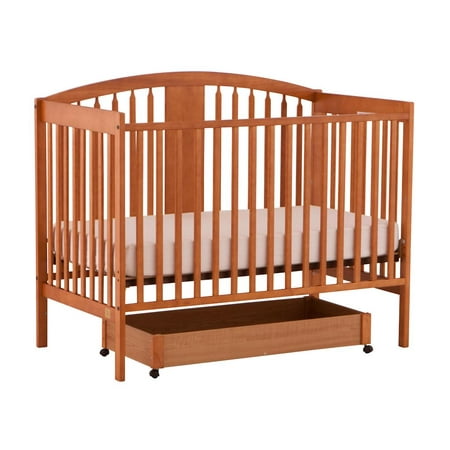 The Hollie 4 in 1 Fixed Side Convertible Crib by Stork Craft features traditional tailored lines, rounded edges and a roomy design. All sides are stationary and include an adjustable three position mattress support base to add to the security and stability of this simple yet elegant crib. The Hollie comes with a sliding bottom drawer, providing extra storage for diapers and wipes. This beautiful crib is made of solid wood and wood products, offered in a selection of non toxic, durable finishes. Save on costs once your baby is ready for a big kid bed with an easy conversion from a crib, to toddler bed, to daybed to full size bed (bed rails not included). Complete your nursery look by adding an assortment of matching accessories: a changing table, chest, dresser or glider and ottoman.Available finishes: cognac, espresso, oakAll sides are stationary to add to the security and stability4 in 1 Fixed Side Convertible Crib: converts from a crib to toddler bed to daybed to full size bedMatching accessories: a changing table, chest, dresser or glider and ottomanTrundle drawer slides neatly under crib for added storageEasy to assemble with permanently attached instructionsAdjustable three position mattress support baseBottom drawer slides neatly under the crib for added storageComes with a 1 Year Limited Manufacturers WarrantyJMPA certifiedSpecifications:Overall Dimensions: 48" H x 55.5" W x 29.75" D Weight: 64 lbs