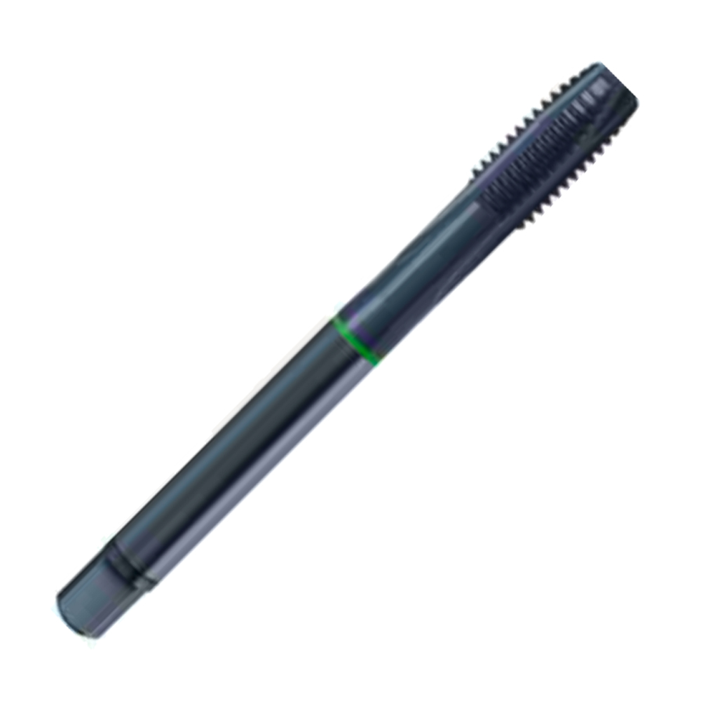M10 x 1 Green Ring Spiral Point Plug DIN 374 Small Shank Tap, HSS-E (Cobalt), D4/D5, Steam Oxide Finish Type: Green Ring,Number of Flutes: 3,Hole Type :Through Hole 90mm Overall Length, 7mm Shank Diameter, Without Coolant Through, Chamfer Form B: 3.5 to 5 Lead Threads Series No. 2879, Order Code 10.0050, Guhring Part #9028790100050