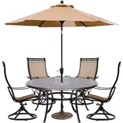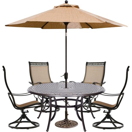 Hanover MANDN5PCSWRD4-SU Manor 5-Piece Outdoor Dining Set with Four Swivel Rockers, 60 Inch Dining Table and 9 Feet...