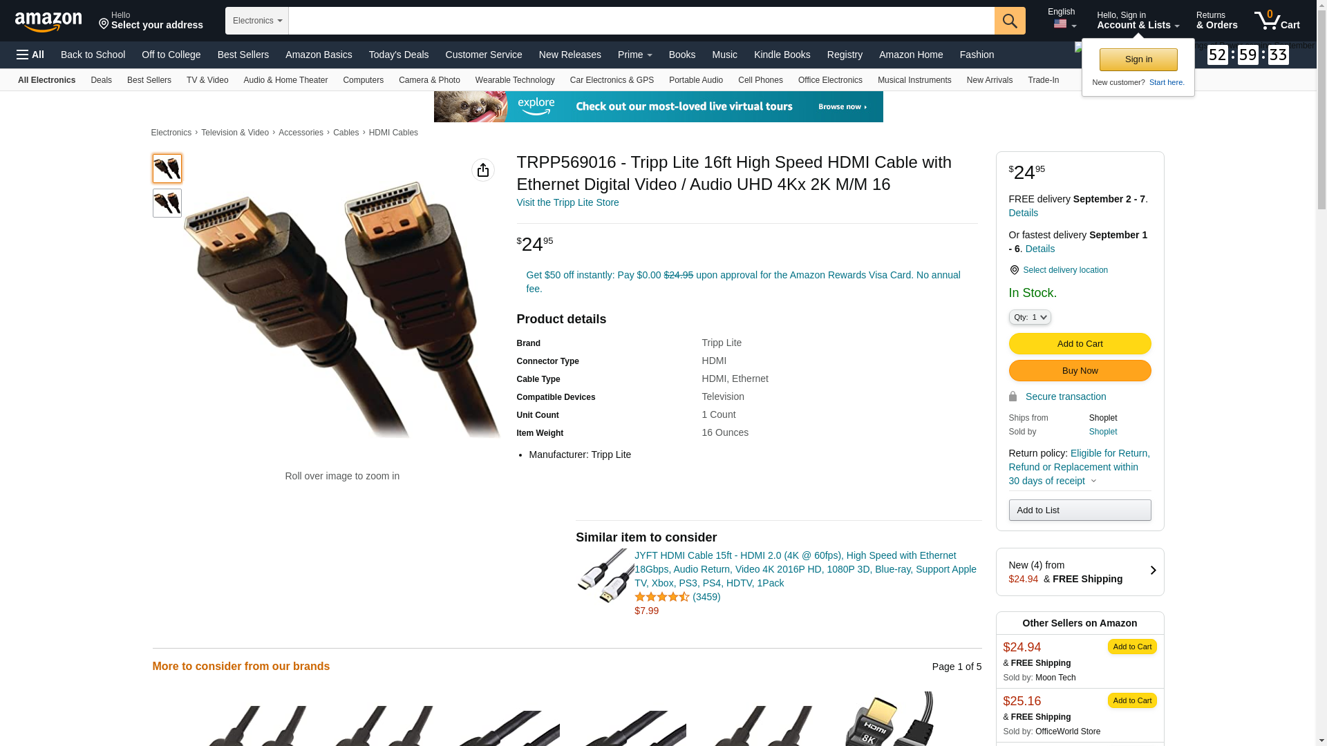 - HDMI - 16 ft - 1 x HDMI Male Digital Audio/Video - 1 x HDMI Male Digital Audio/Video - Black
