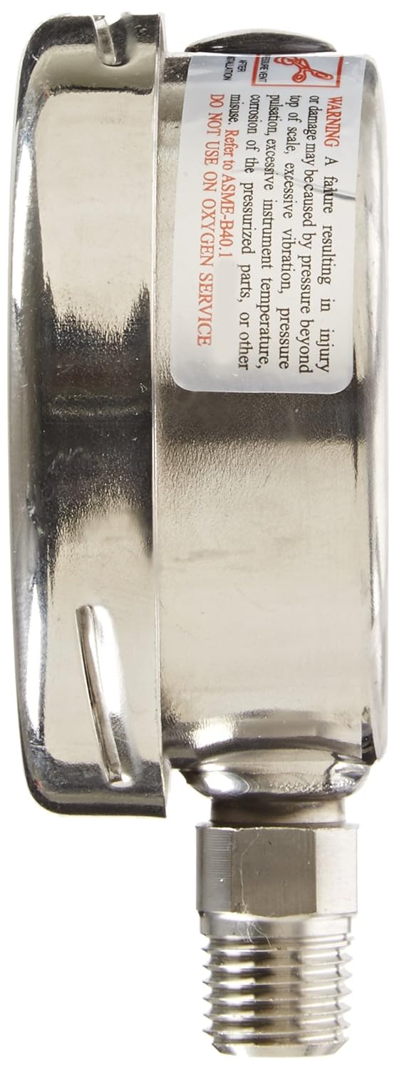 PIC Gauges 311D-254E Bottom Mount Dry Pressure Gauge w/ SS Case/Internals/Removable Bezel, Glass Lens, 2.5" Dial, 0/100 psi Range, 1/4" Male NPT