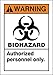 Order LBHZ301VSP by Accuform Vinyl Sign "Biohazard Authorized..." - US Mega Store
