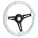 350mm White & Blue 2" Deep Dish Aluminum 3-Spoke Wooden Steering Wheel (Black)