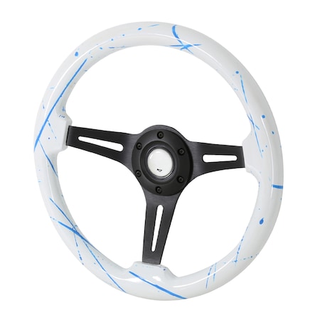 Spec-D Tuning 350Mm Steering Wheel With Graphic - Black Spoke - White/Blue Splash Of Color - SW-WT-BK-BLP