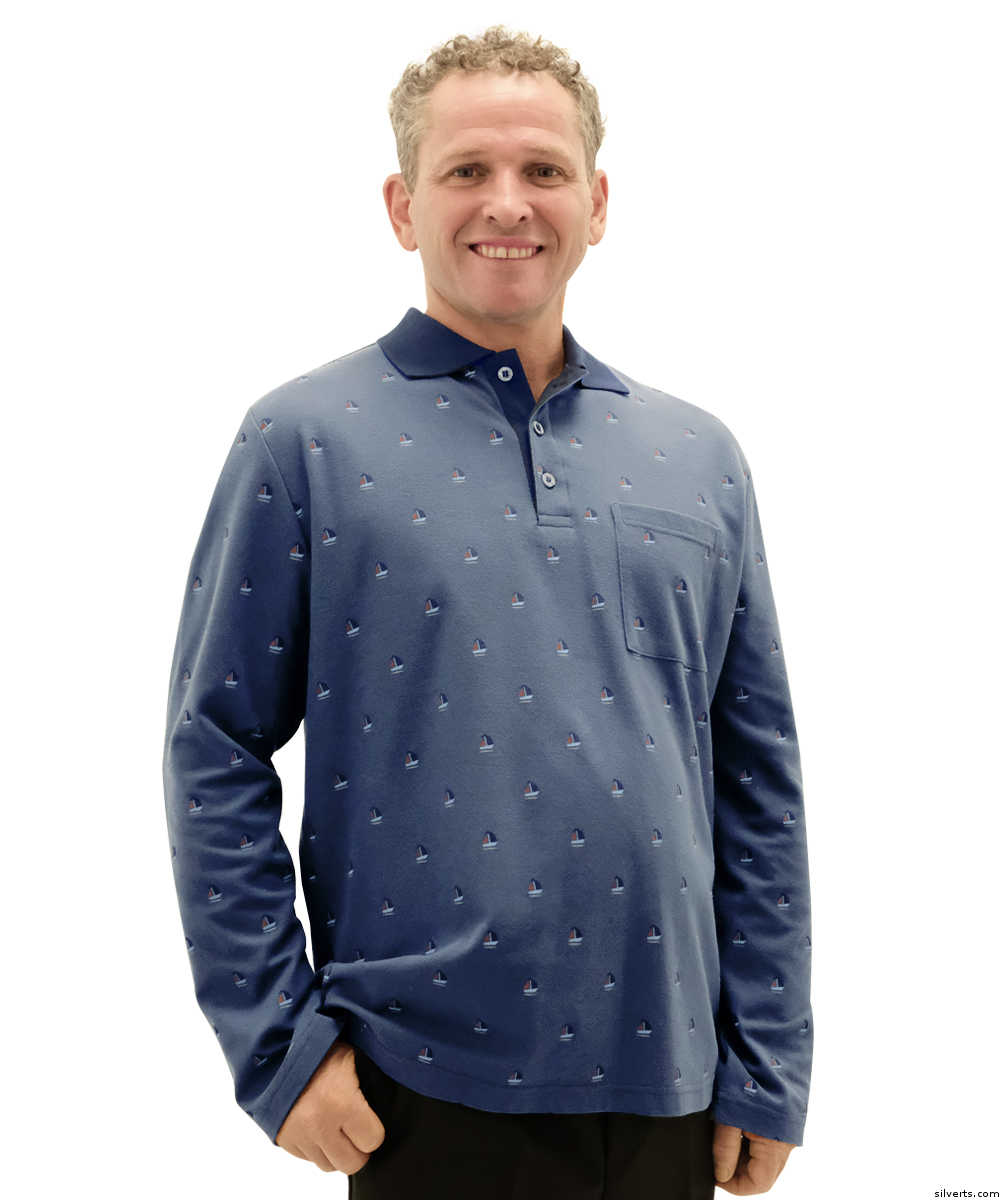 Silverts 518301701 Adaptive Long Sleeve Polo Shirt for Mens - Fits Up to 4XL - Small, Navy Sail
