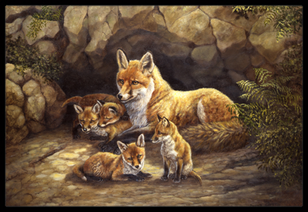 Fox Family Foxes by the Den Indoor or Outdoor Mat- 18 x 27