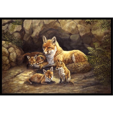 Caroline's Treasures BDBA0169MAT Fox Family Foxes by The Den Door Mat, Indoor Rug or Outdoor Welcome Mat 18x27 Doormat, 27" L x 18" W, Multicolor
