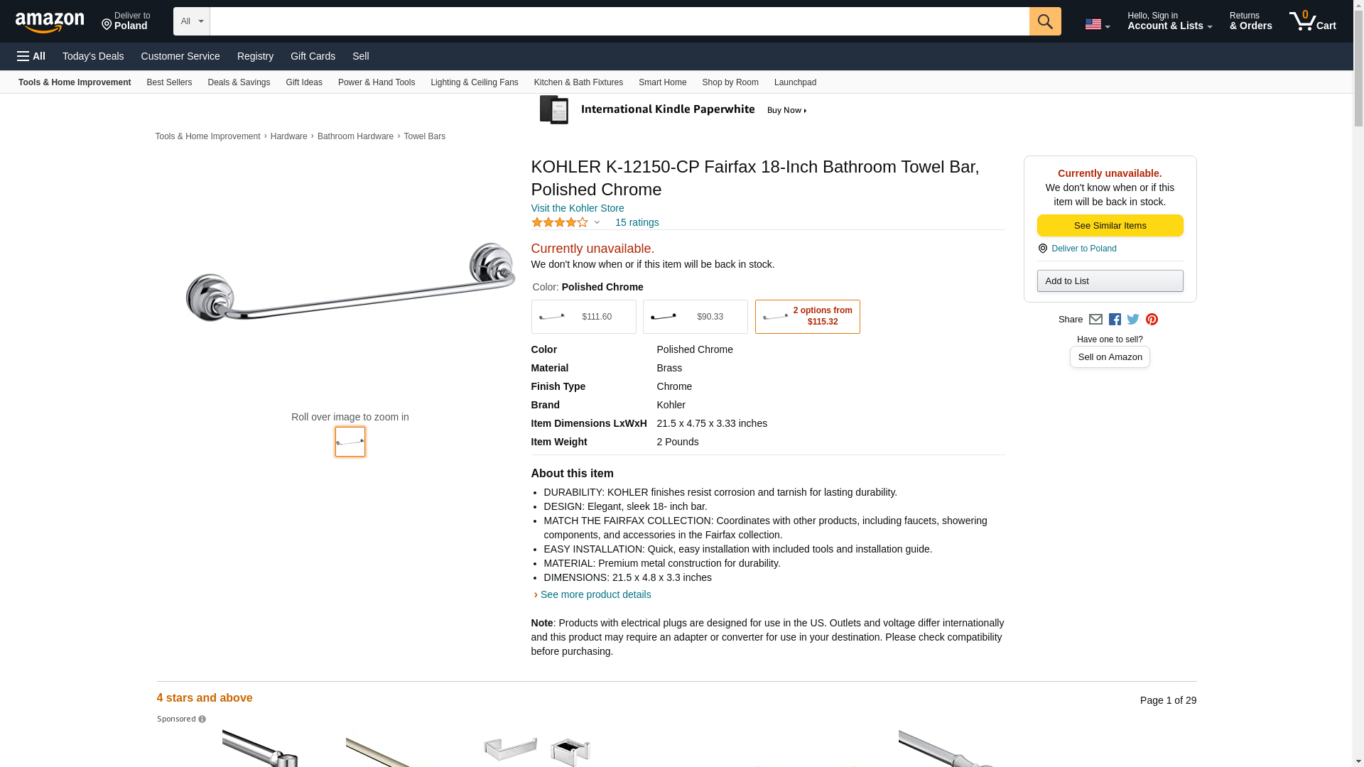 Kohler - Fairfax Series 18 Inch Towel Bar Bathroom Accessories
