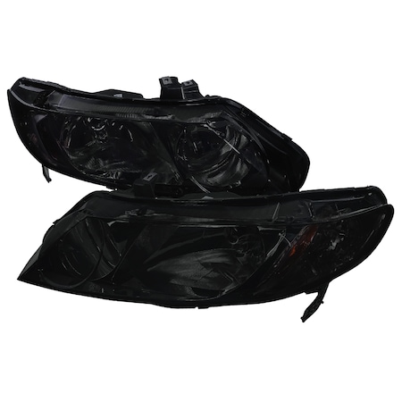 Spec-D Crystal Headlights w/ Amber Turn Signal Lights (Chrome Housing/Smoke Lens) Honda Civic 2006-2011 | 2LH-CV064G-RS