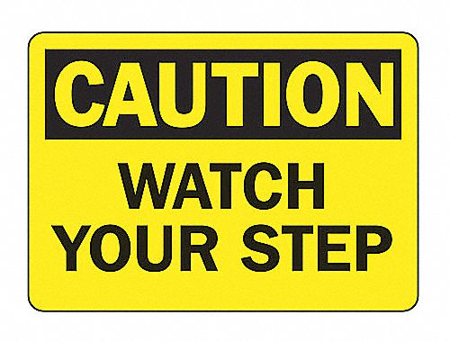 Accuform, MSTF645VA, 7" x 10" OSHA Caution Safety Sign "Watch Your Step" Aluminum Features: UV protective coating Withstands splashes and washdowns Endures outdoor environmental conditions Service temperature range: -40 to 250 F Provides the strength of metal, yet never rusts Rounded corners and 3/16" mounting holes on most sizes, will be adjusted for larger sizes