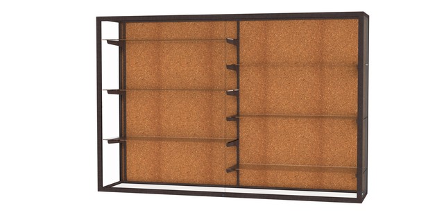 Champion Series 1200 Wall-Mounted Display Case, 72"L, Dark Bronze Aluminum Frame, Cork Display Back
