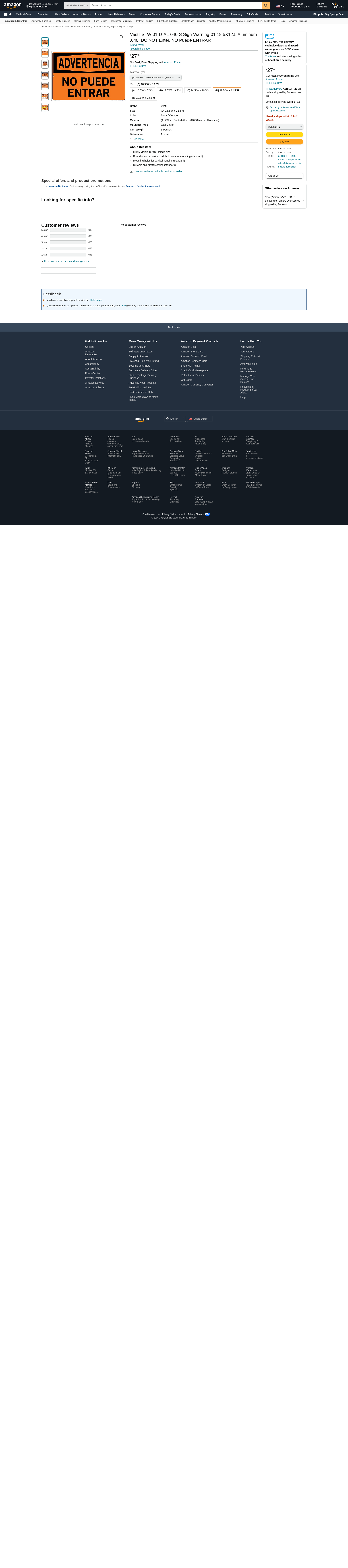 Vestil SI-W-01-D-AL-040-S Sign-Warning-01 18.5X12.5 Aluminum .040, DO NOT Enter, NO Puede ENTRAR