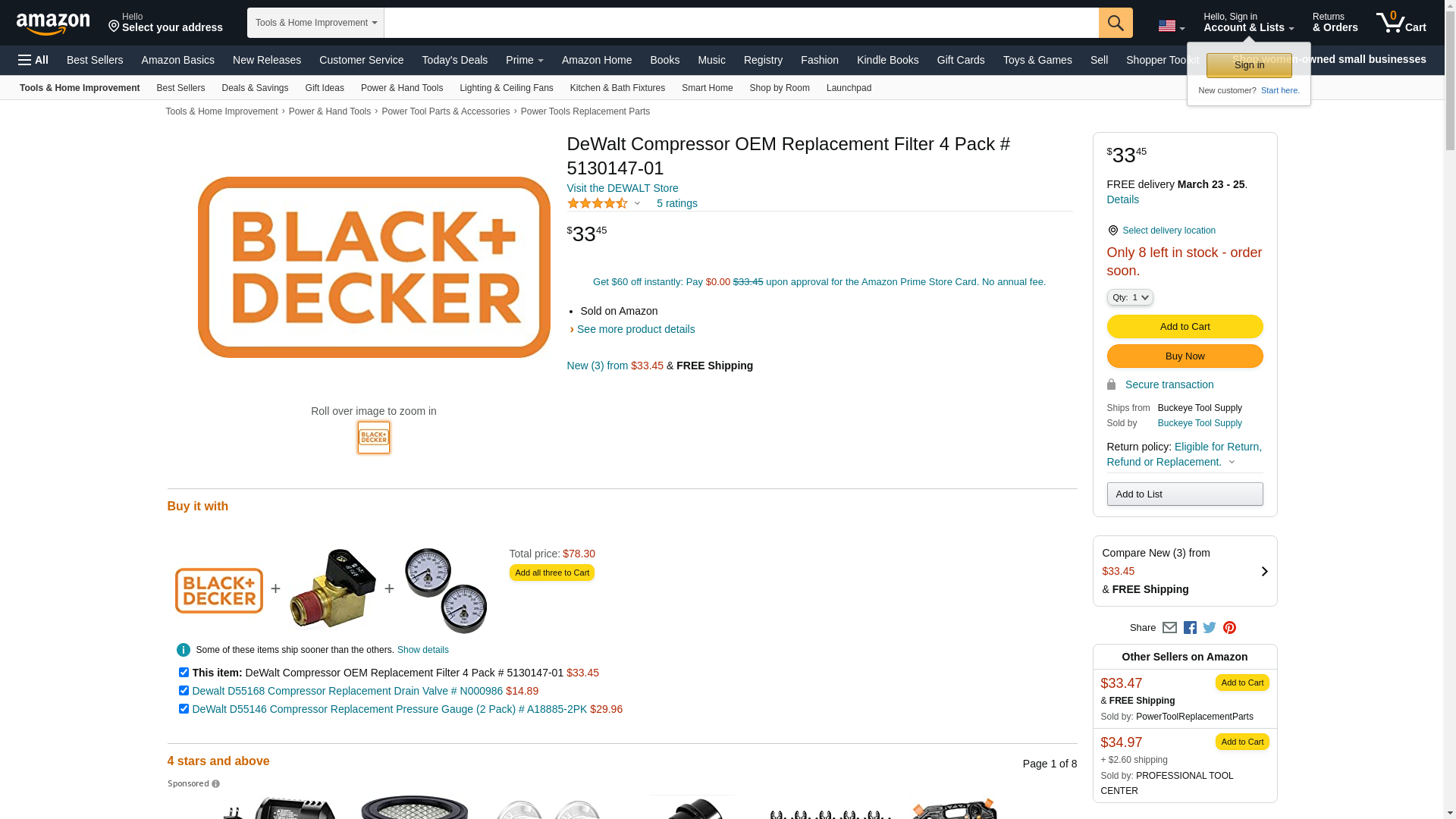 DeWalt Compressor OEM Replacement Filter 4 Pack # 5130147-01