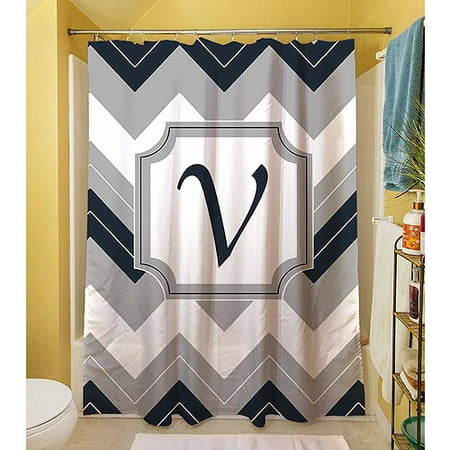 <br /> <b>Thumbprintz Chevron Monogram Blue Shower Curtain, 71" x 74":</b> <ul> <li>Beautiful art by MWW Design Studio creates a monogram design in blue, grey and white for this printed shower curtain</li> <li>Printed on 100 percent polyester, the shower curtain measures 71" x 74"</li> <li>Button-hole top creates a finished look for the piece</li> <li>Equally at home in or out of the bathroom, the drape and quality of the curtain is great for windows as well</li> <li>Easy care machine wash and dry</li> </ul>