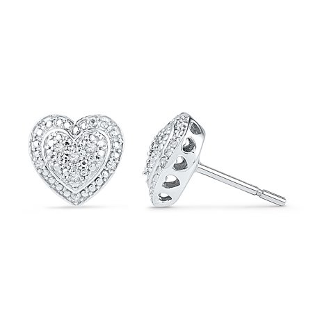 Sterling Silver White Round Diamond Heart Earring (1/20CTTW)