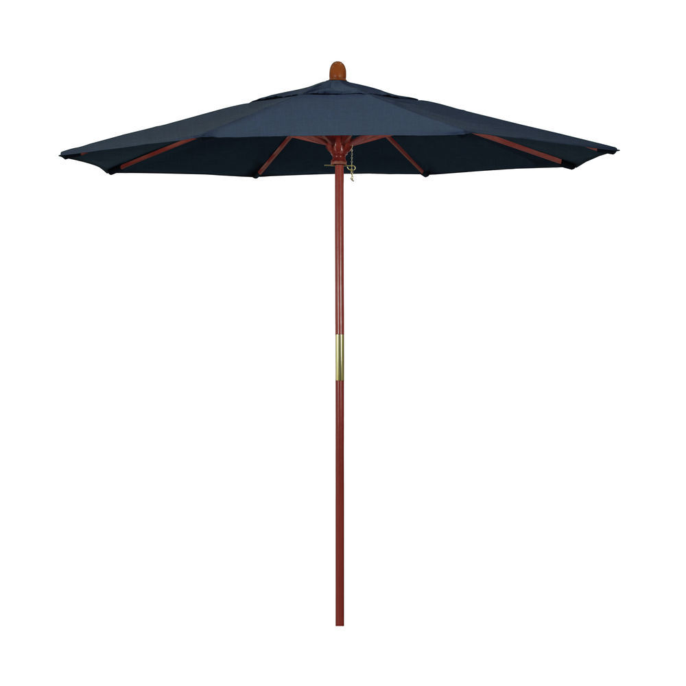 California Umbrella 7.5' Rd. Wooden Market Umbrella, Push Open Pin Stop , Sunbrella Spectrum Indigo
