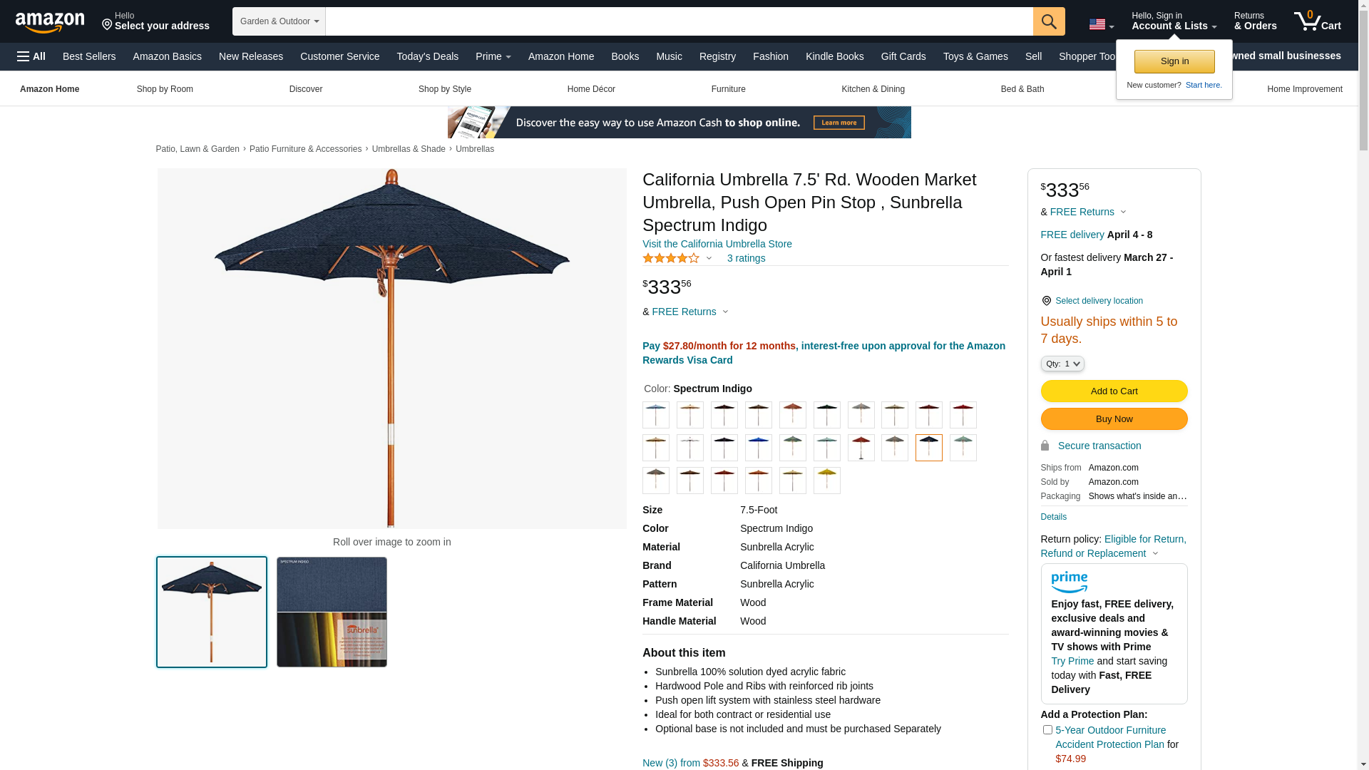California Umbrella 7.5 FT commercial grade patio umbrella, hardwood frame-Sunbrella Spectrum Indigo fabric