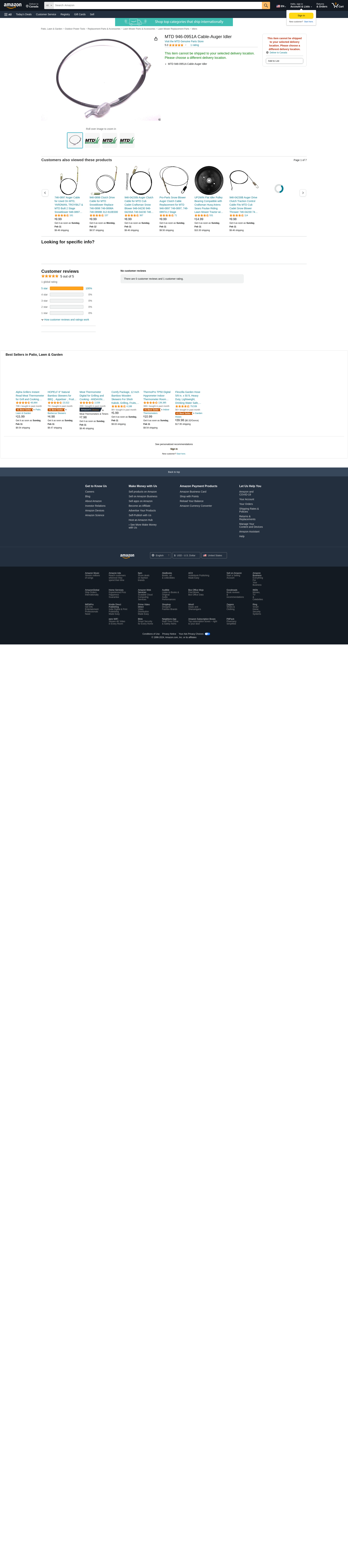 Mtd 946-0951A Snowblower Auger Drive Cable Genuine Original Equipment Manufacturer (OEM) Part