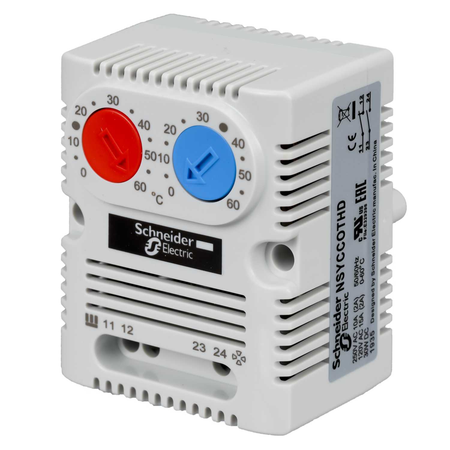 Schneider NSYCCOTHD DOUBLE THERMOSTAT, CLIMASYS CC, 250VAC, 0-60°C, 1NO/NC, IP20 | Kempston Controls