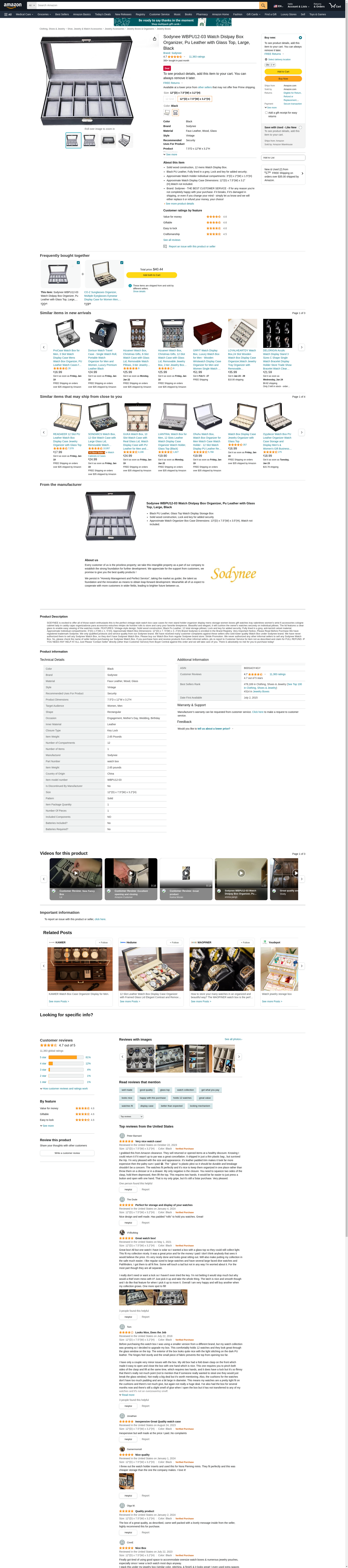 Sodynee WBPU12-03 Watch Dislpay Box Organizer, Pu Leather with Glass Top, Large, Black: Maxedbuy.com