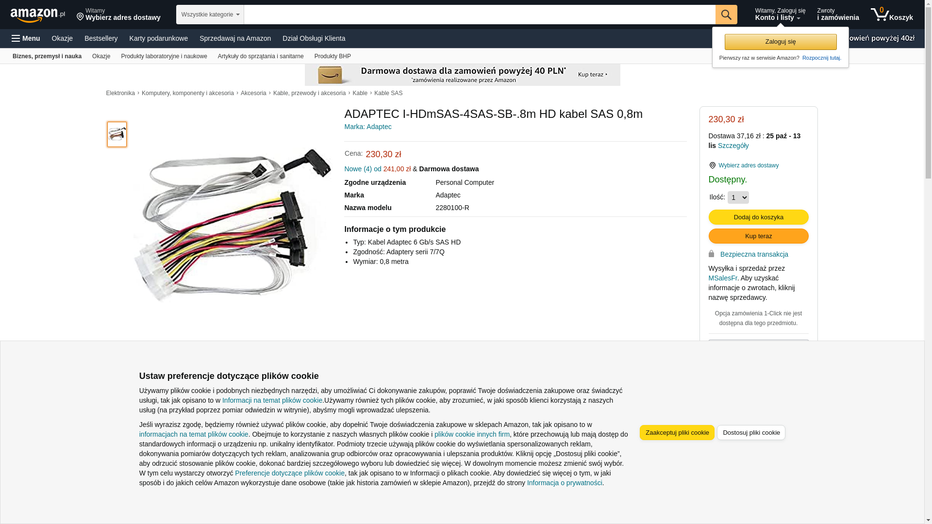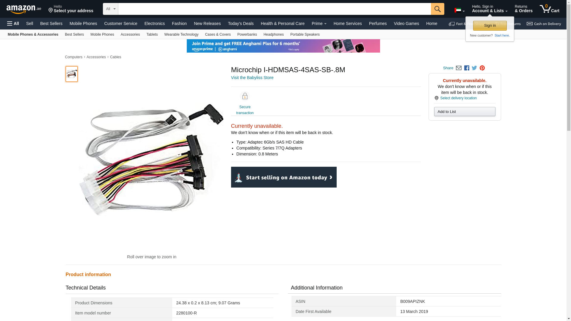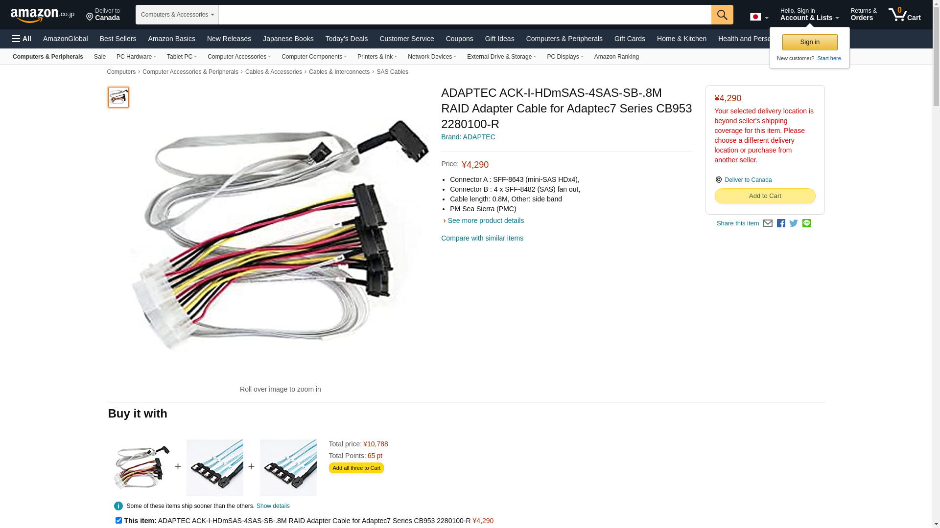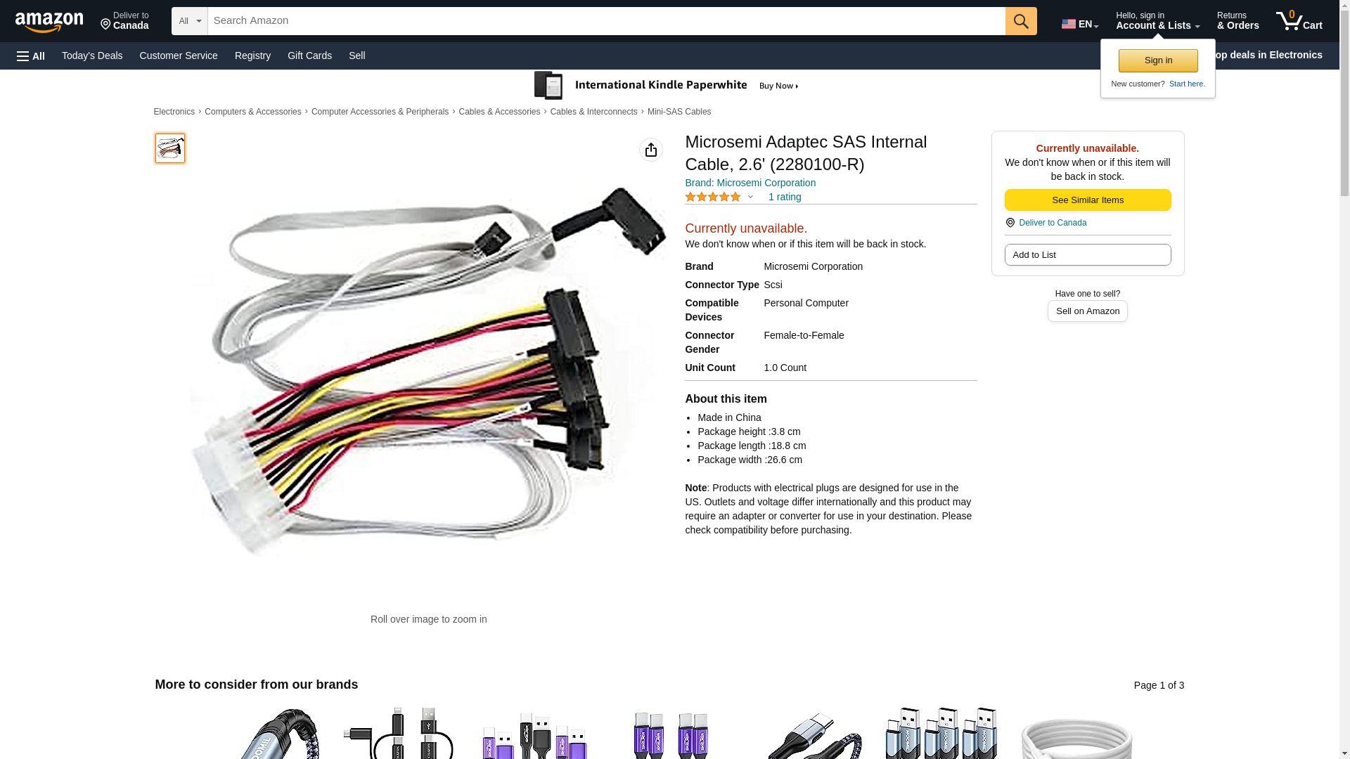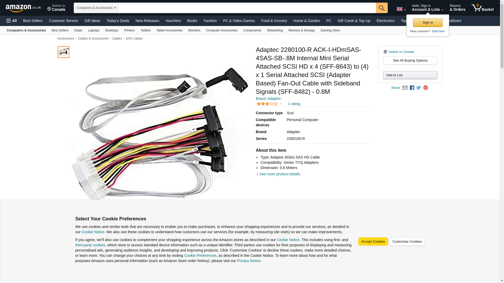 Microsemi Adaptec SAS Internal Cable, 2.6' (2280100-R)
