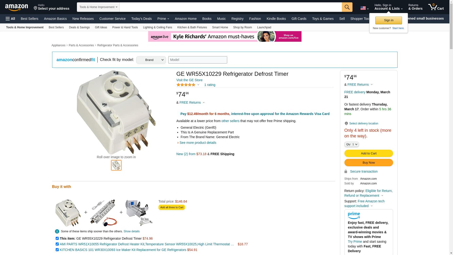 ![]() midwestapplianceparts.com | WR55X10229-GEH-P | 1 | Current Unavailable - No ETA Available | 1 | 1 @ $79.97 |