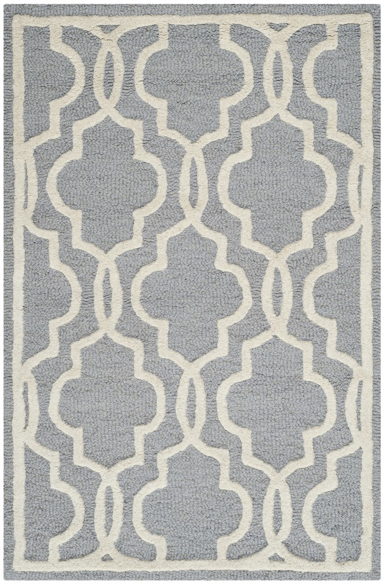 Safavieh CAM131D-24 Cambridge Hand Tufted Accent Rugs, Silver & Ivory - 2 ft.-6 in. x 4 ft.