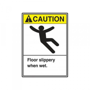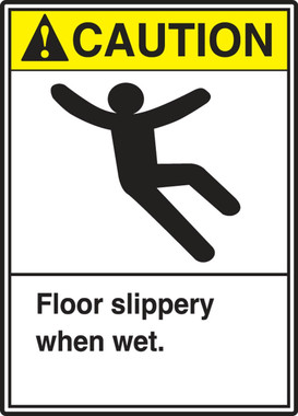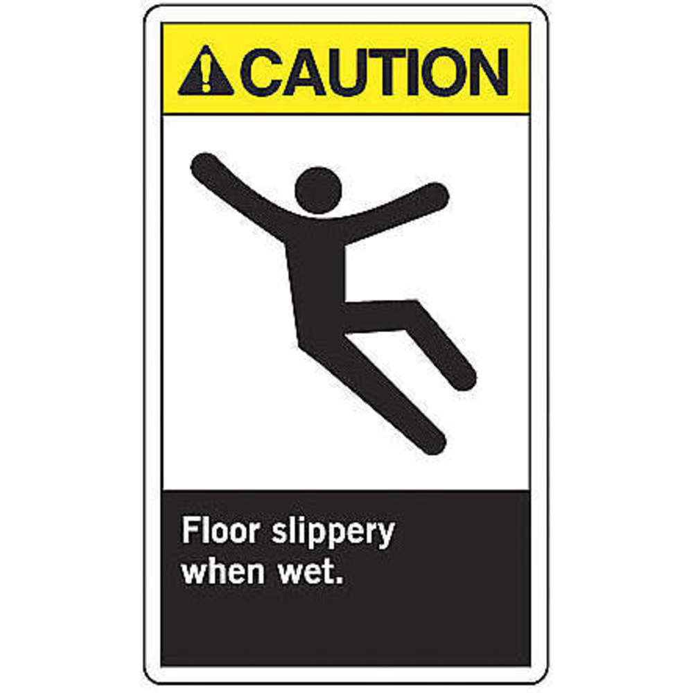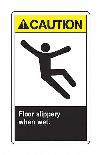 - <b>Price For:</b> Each <b>Legend</b>: Floor Slippery When Wet <b>Width</b>: 3-1/2" <b>Material</b>: Vinyl <b>Item</b>: LABEL <b>Height</b>: 5" <b>Self-Adhesive</b>: Yes <b>Legend Style</b>: Text and Symbol <b>Shape</b>: Rectangle <b>Subject Matter</b>: Information <b>Header Background Color</b>: Black <b>Legend Color</b>: White <b>Header Legend Color</b>: Yellow <b>Background Color</b>: Black, White <b>Header</b>: Caution <b>Legend/Background Color</b>: Black/White