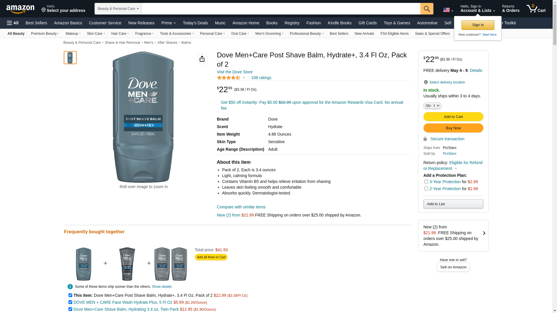 Dove Men+Care Post Shave Balm, Hydrate+, 3.4 Fl Oz, Pack of 2: Maxedbuy.com
