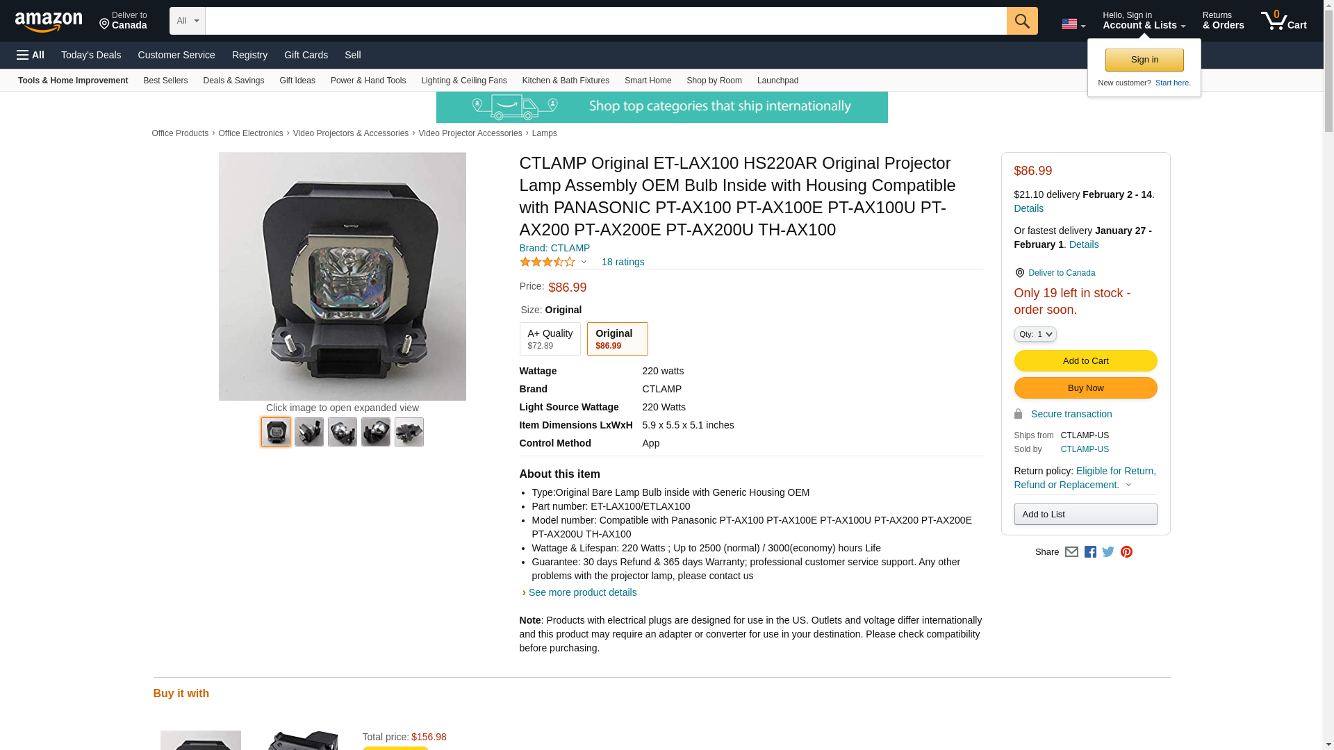 CTLAMP ET-LAX100 (HS220AR OEM Original Bare Inside) with Housing for PANASONIC PT-AX100 / PT-AX100E / PT-AX100U / PT-AX200 / PT-AX200E / PT-AX200U / TH-AX100