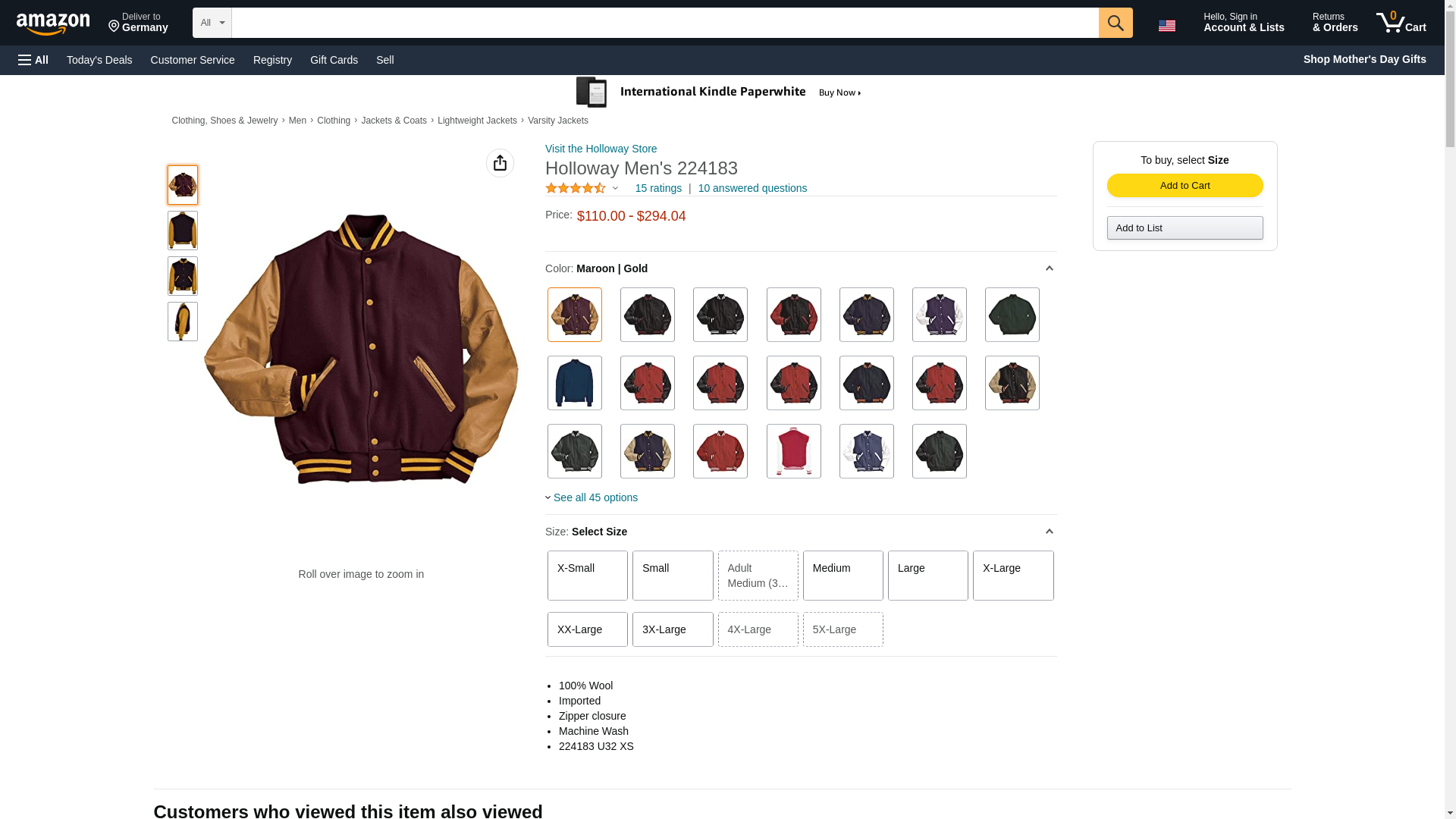 Holloway 224183.T40.XS Adult Varsity Jacket, Maroon & Light Gold - Extra Small