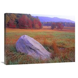 Global Gallery GCS-397173-2432-142 24 x 32 in. Boulder & Autumn Colored Deciduous Forest, Cades Cove, Great Smok