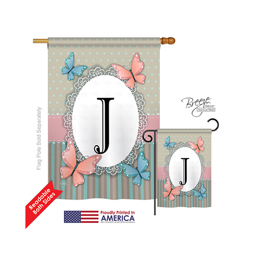 Breeze Decor 30140 Butterflies J Monogram 2-Sided Vertical Impression House Flag - 28 x 40 in.
