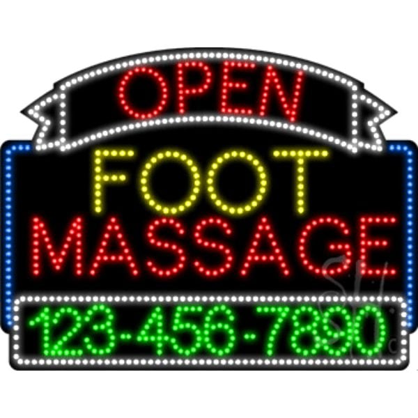 Everything Neon L100-5768 24 x 31 x 1 in. Foot Massage Open with Phone Number Animated LED Sign - Yellow, Red & Whit
