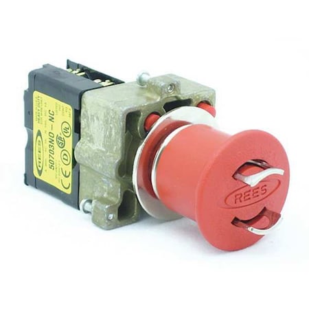 Emergency Stop Push Button, 22 mm, Maintained Push Action, Padlock Mushroom Head Type of Operator, Head Material Delrin, Contact Form 1NO/1NC, Bezel Die Cast Zinc, Color Red, Contact Rating 10A @ 600V AC, Number of Operators 1, NEMA Rating 12, 13, IP Rating 65, Legend No Legend, Standards CE, CSA, UL, Terminal Connection Screw Clamp, Material Metal