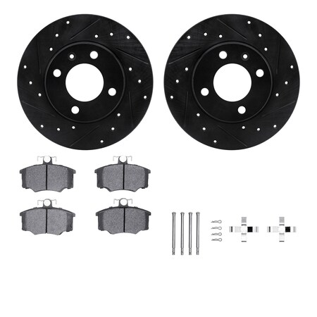 8512-74079, Rotors-Drilled and Slotted-Black w/ 5000 Advanced Brake Pads incl. Hardware, Zinc Coated