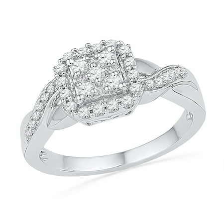 10kt White Gold Womens Round Diamond Square Cluster Ring 1/3 Cttw. Combined diamond weight of 1/3 carats total weight represents a range of 0.30 - 0.36 cts. t.w.