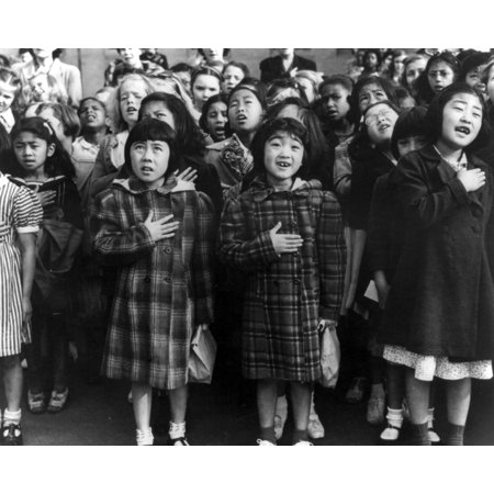 Flag Ceremony 1942 Na Group Of Children Including Many Japanese Americans At The Raphael Weill School In San Francisco Reciting The Pledge Of Allegiance Photograph By Dorothea Lange April 1942 Poster