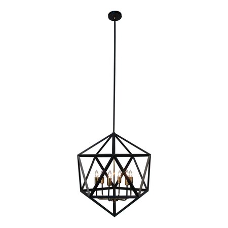 Dainolite ARC-226C-AB 6 Light Chandelier, Matte Black With Antique Brass Accents