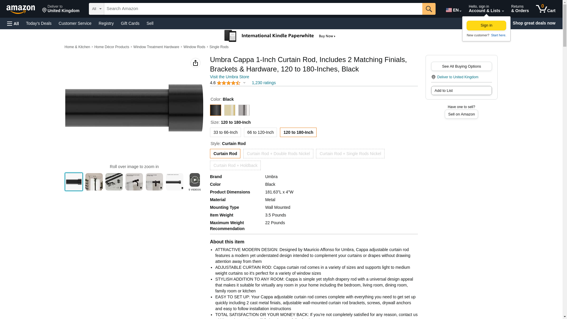 Umbra Cappa 1-Inch Curtain Rod, Includes 2 Matching Finials, Brackets & Hardware, 120 to 180-Inches, Black