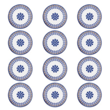 Daily Floreal 12 Large 10.04" Dinner Plates in Blue and Yellow