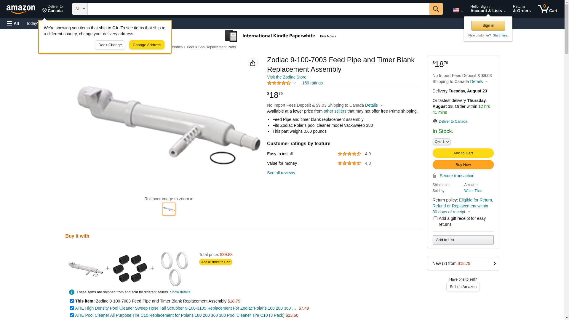 Zodiac 9-100-7003 Feed Pipe and Timer Blank Replacement Assembly