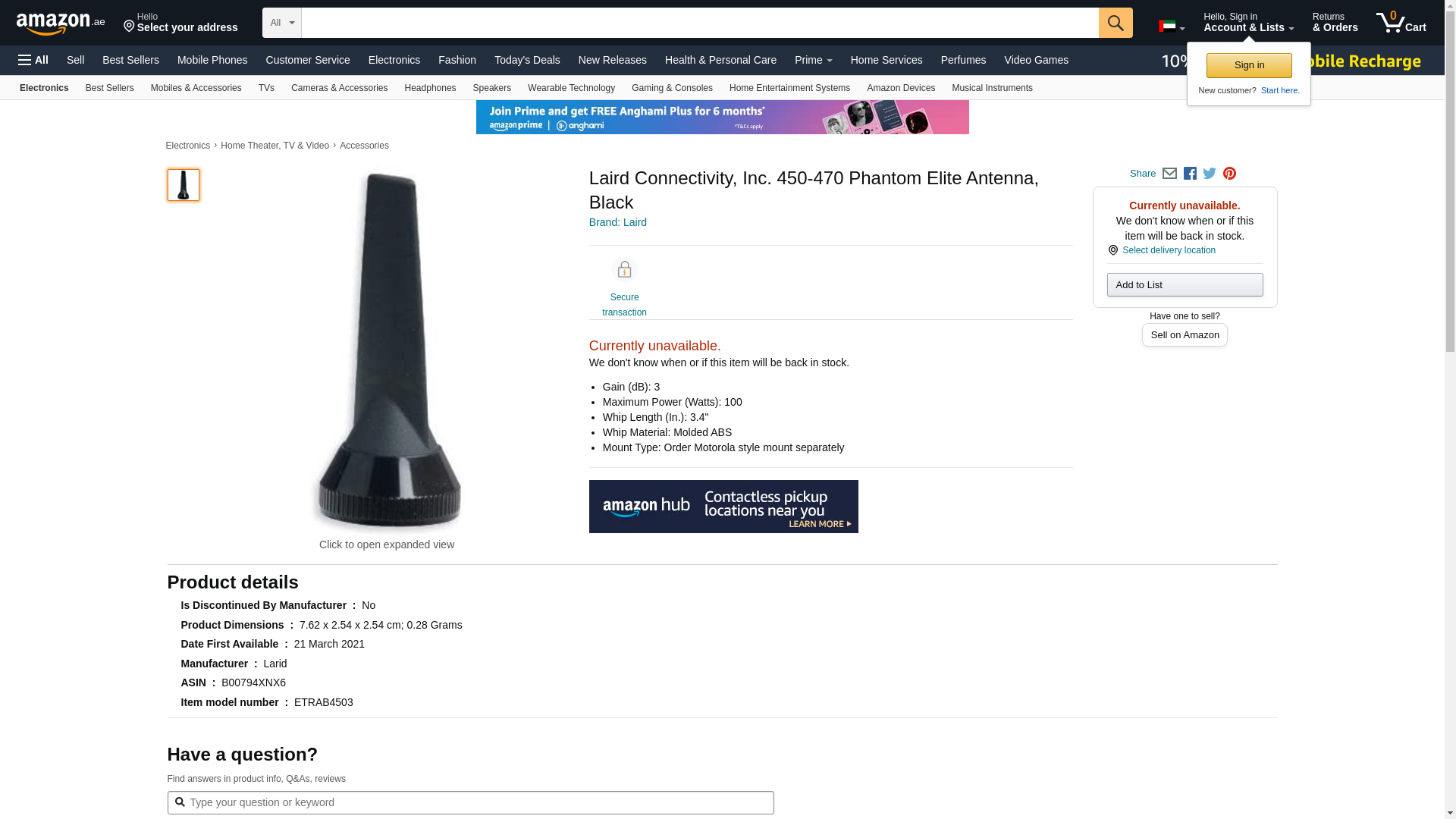 Laird Connectivity, Inc. 450-470 Phantom Elite Antenna, Black