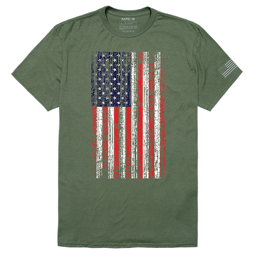 Rapid Dominance TS1-800-G78-03 Distressed Flag Tactical Graphic Tee Shirt, Olive - Large