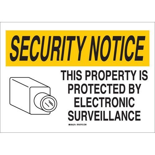 Brady 122684 SECURITY NOTICE This Property Is Protected By Electronic Surveillance Sign - Self-sticking Polyester 7 x 10 - Black/Yellow on White